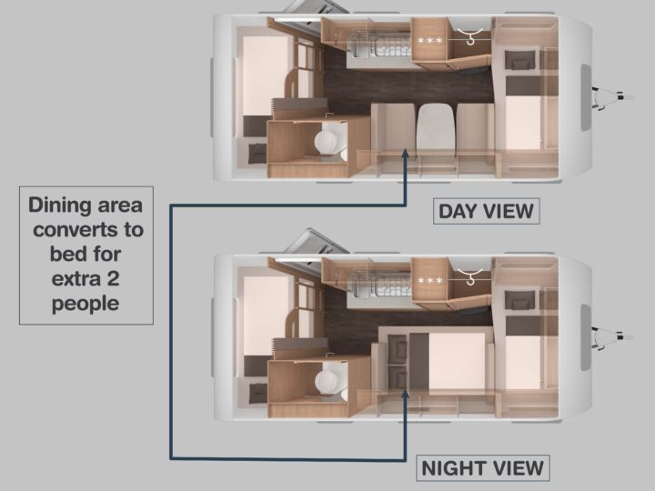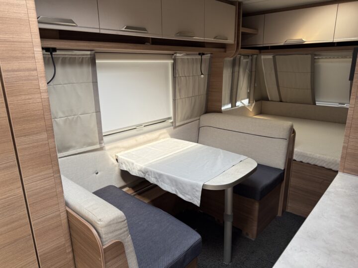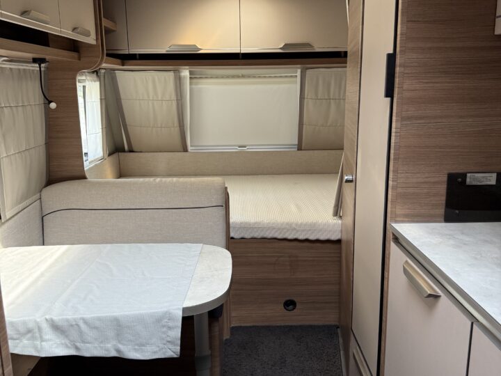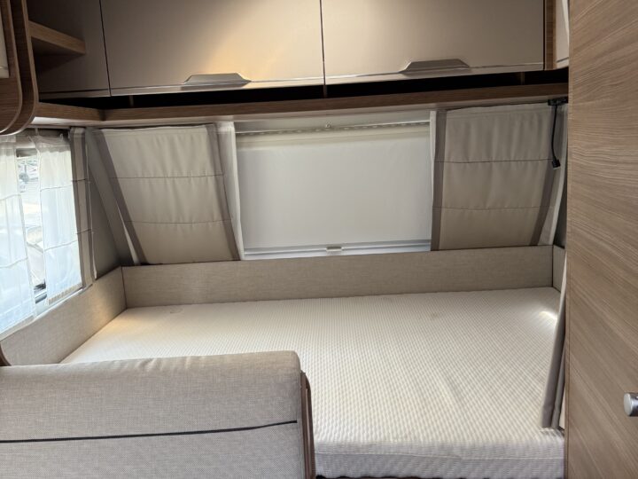 Designed for ease and comfort for the entire family, the Knaus Sport 500 QDK is lightweight and can be easily towed by most midsize cars. Equipped with built-in air conditioning and an onboard toilet, you’ll stay comfortable no matter where your travels take you. Perfect for camping weekends, beach holidays, or spontaneous escapes, with 6 beds this caravan is suitable for any family. It’s a perfect upgrade from sleeping on an air mattress in a tent, providing the comfort of home while embracing the outdoors in style.